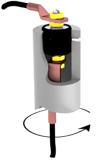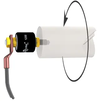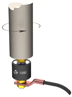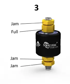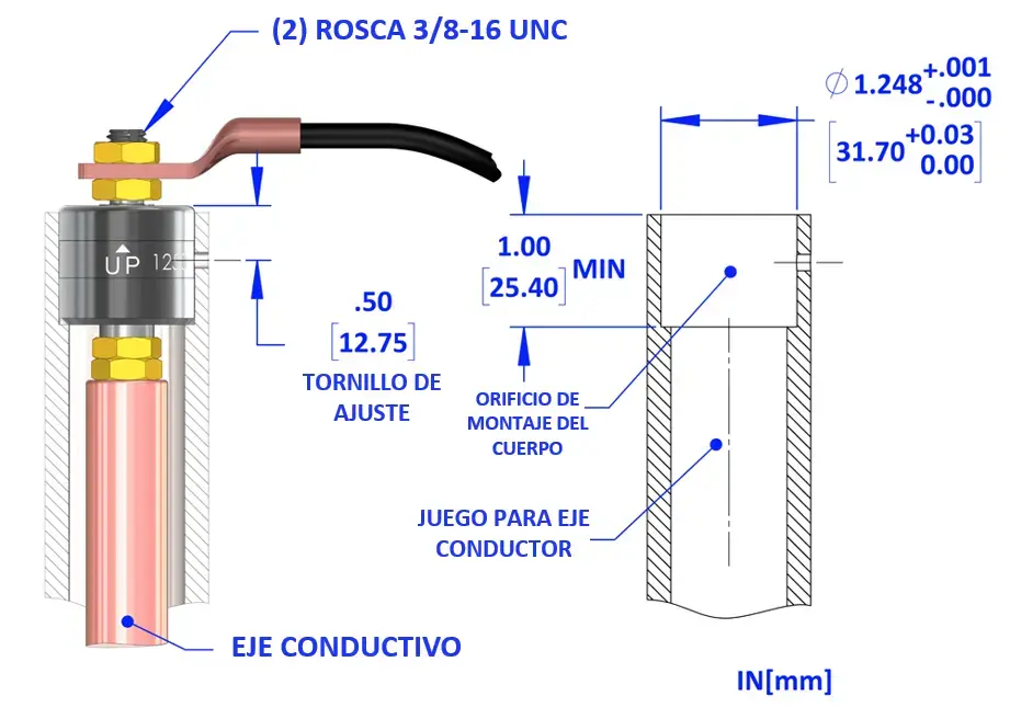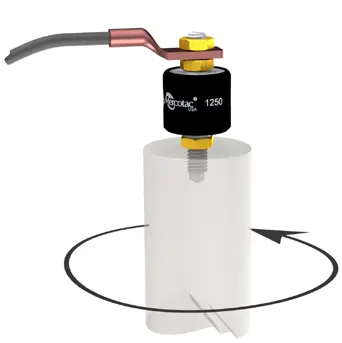 Mercotac Modelo 1250 generalmente se monta mediante el perno roscado en cualquiera de los extremos o mediante el cuerpo negro usando un tornillo de fijación. Cuando lo monte horizontalmente, monte el Mercotac de modo que el cuerpo del conector gire.