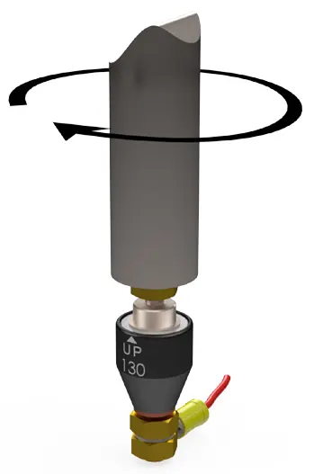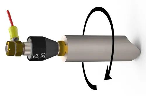 Mercotac Modelo 130 generalmente se monta mediante el perno roscado en cualquiera de los extremos o mediante el cuerpo negro usando un tornillo de fijación. Al montarlo horizontalmente, monte el Mercotac de modo que el cuerpo del conector gire