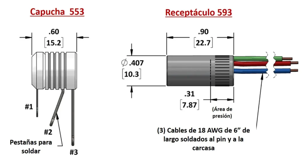 • Con tres terminales de soldadura para cable de 18 AWG/li>