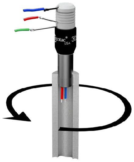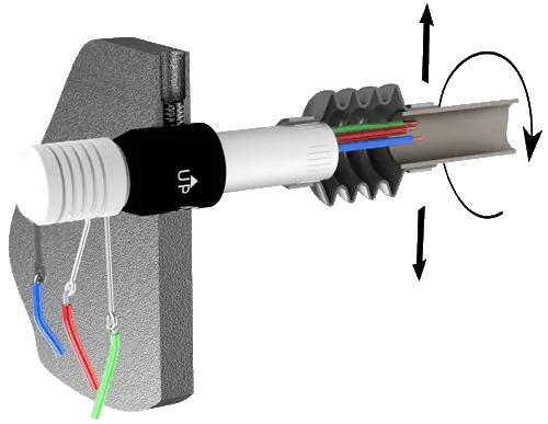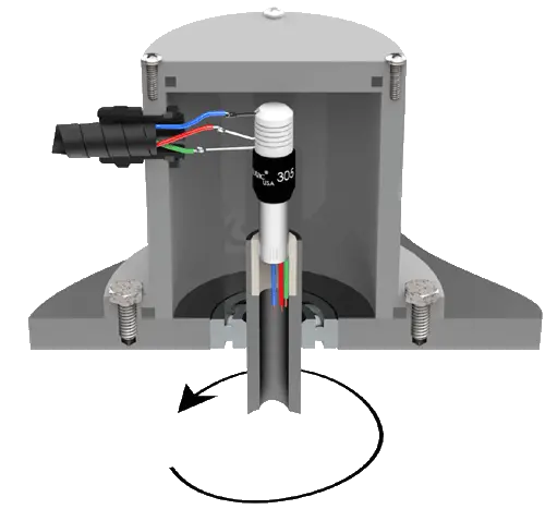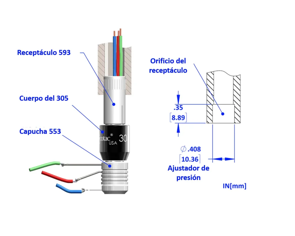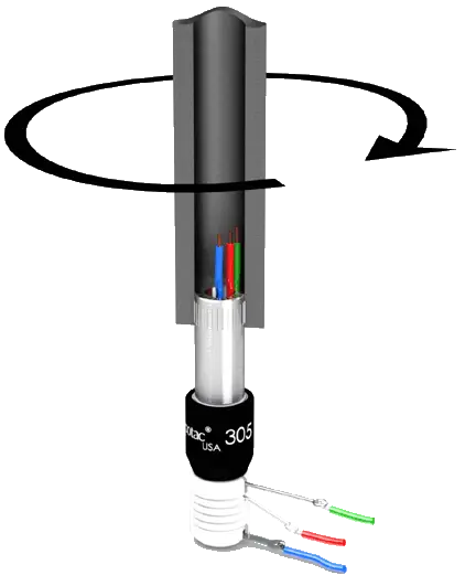 El modelo 305 generalmente se monta mediante un receptáculo de metal moleteado, que se ajusta a presión en el miembro giratorio de la máquina. Cuando se use horizontalmente, monte el Mercotac de manera que el cuerpo del conector gire.