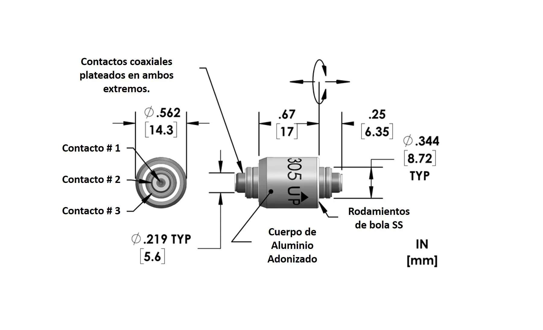 • Nota: El conector Mercotac serie 305 viene estándar con rodamientos de bolas de acero inoxidable.