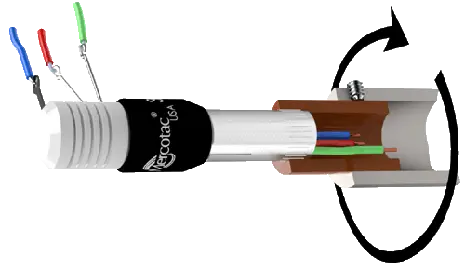 Se utiliza un receptáculo para montarlo en el dispositivo giratorio. Los accesorios son necesarios para las conexiones de cables, ya que las unidades Mercotac no se pueden soldar directamente. Ordene por separado..