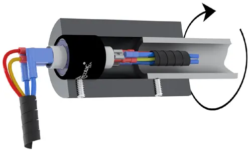 Se utilizan frecuentemente en turbinas eólicas para transmitir energia, datos y señales de control entre las partes estacionarias y giratorias. Esto permite un funcionamiento y control eficientes de la turbina.